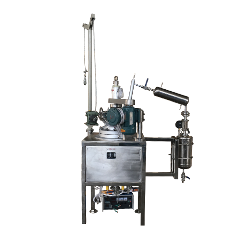 減壓蒸餾反應(yīng)釜是一種快速將液體介質(zhì)濃縮或分離的裝置,反應(yīng)介質(zhì)在反應(yīng)釜中被加熱至沸點(diǎn)、通過(guò)攪拌系統(tǒng)不斷地旋轉(zhuǎn)增大蒸發(fā)表面積,加快蒸發(fā)速度,適當(dāng)?shù)恼婵諚l件使達(dá)到沸點(diǎn)的介質(zhì)快速分離,通過(guò)冷凝器冷凝后并收集。